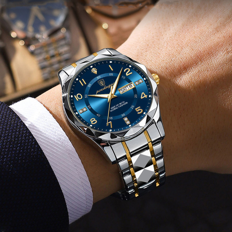 ساعة رجالية سويسرية جديدة فاخرة مقاومة للماء والخدش ومظيئة في الليل المظلم من ماركة poedagar